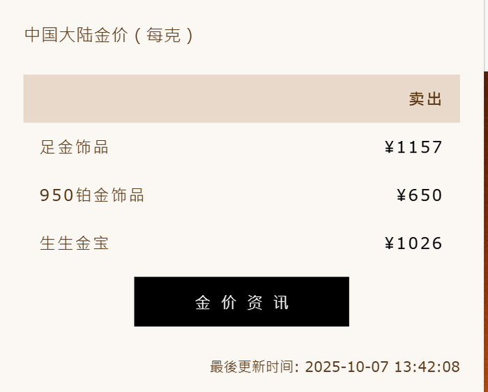 随着国际金价近日大涨,国内黄金饰品价格也水涨船高。从多家黄金珠宝品牌公布的足金首饰价格来看,截至目前,周生生足金饰品价格涨至1157元/克,周大福、六福珠宝、潮宏基等足金饰品价格为1155元/克,较10月1日的1129元/克上调26元/克。
