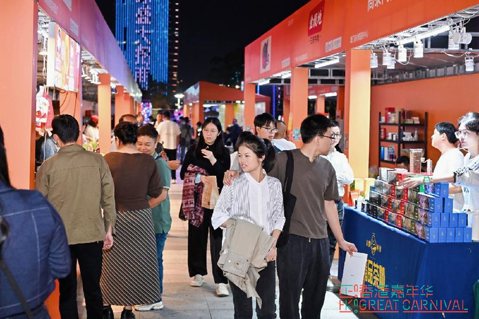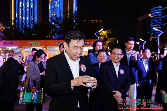 开幕式上,香港知名演员詹瑞文以“狮子山精神”为主题进行互动分享,市集区域人气渐旺,市民游客在怀旧打卡点前拍照留念,品尝地道港式美食,选购特色创意产品,沉浸在浓厚的节日氛围中。