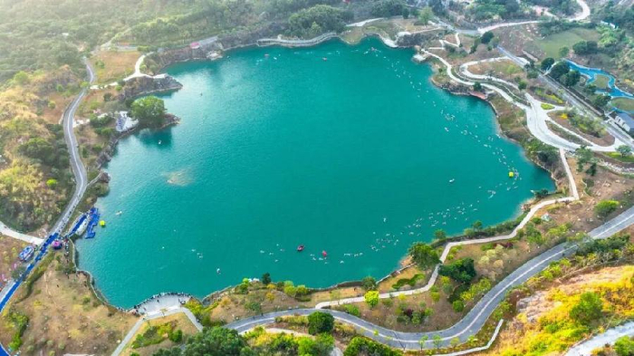 71岁的苏州赵先生特意远道而来,既参赛又旅游,“在这么美的地方运动,是身心双重享受!”作为广东万里碧道品牌赛事年度压轴站,本次比赛选址藏满巧思。如今水清岸绿、被誉为“东莞小九寨沟”的碧玉湖,昔日是一座矿山。经过南城“百千万工程”改造升级,400余公里碧道串联起河湖肌理,水质达到饮用水标准,周边环境焕然一新,形成了“水清、岸绿、景美、人和”的生态画卷。