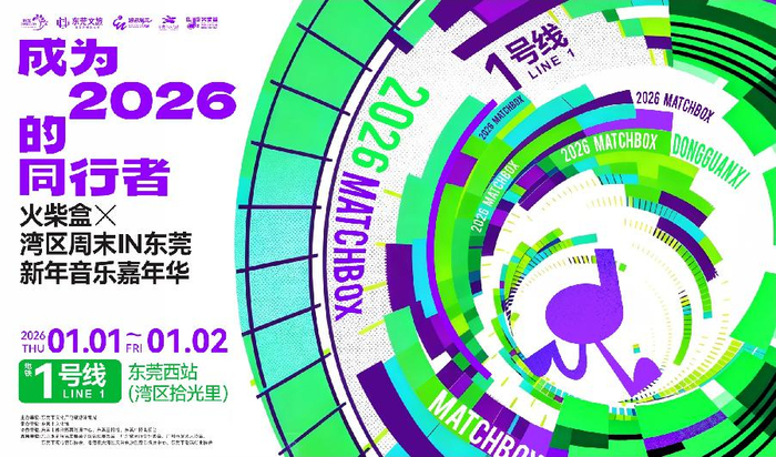 新快报讯 跨年潮玩大动作!用悠扬旋律辞旧迎新,一场沉浸式的听觉盛宴:成为2026的同行者——火柴盒*湾区周末IN东莞新年音乐嘉年华即将火热开启,快快搭上地铁1号线,用旋律开启一整年的美好。