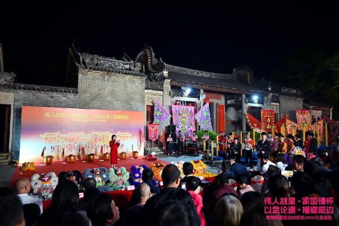 新快报讯 冬日的岭南乡村暖意融融,中山市南朗街道榄边村茶东陈氏宗祠前鼓乐喧天。2025年12月31日,一场以“伟人故里·家国情怀 以武论道·福耀榄边”为主题的元旦庆祝活动在此举行。非遗展演、村志首发、龙狮贺岁等特色环节交织,展现乡村振兴的蓬勃气象。