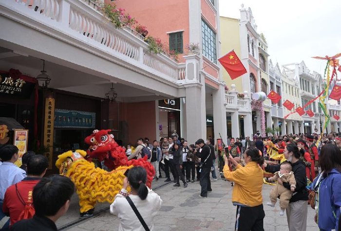 新快报讯 1月1日上午10时,中山市孙文西路步行街锣鼓齐鸣、彩带翻飞,一场以“龙腾狮跃·福满街”为主题的贺岁巡游活动火热上演。百年骑楼下,非遗传承人、民俗表演团队与市民游客共赴一场传统与现代交融的文化盛宴,为新年开篇注入鲜活能量。
