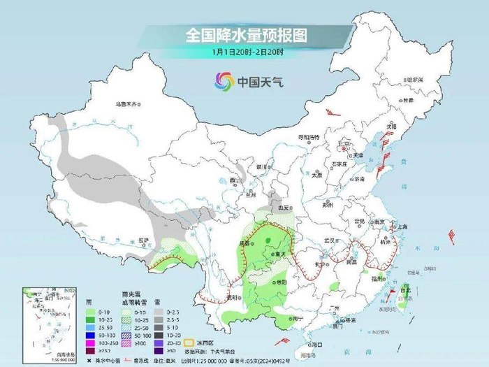 2025年最后一场大范围雨雪延续到了2026年的第一天。昨天到今晨,跨年雨雪过程达到鼎盛阶段,陕西、河南、湖北部分地区出现大到暴雪。大城市中,西安昨天白天,南京今天凌晨,均迎来今冬初雪。郑州、合肥也出现降雪。