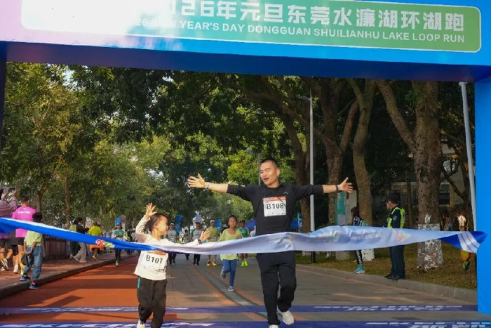 专程从广州赶来参赛的董先生难掩兴奋。他说:“第一次来东莞水濂湖,就被这里的生态环境深深吸引——湖光山色交相辉映,空气清新沁人心脾。能在这样美的环境中完成新年第一跑,全家人都觉得特别幸福!我们用这种健康活力的方式,共同迎接2026年的到来。”