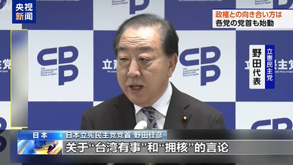 日本立宪民主党党首 野田佳彦:高市政权关于“台湾有事”和“拥核”的言论缺乏考虑,让人感到危险。作为最大的在野党,提出反对案是职责所在。
