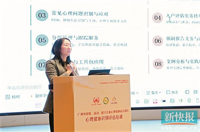 ■李燕玲老师讲解儿童心理健康实务与实操技巧要点。广州举办困境儿童心理健康识别评估专题培训,为260余人赋能