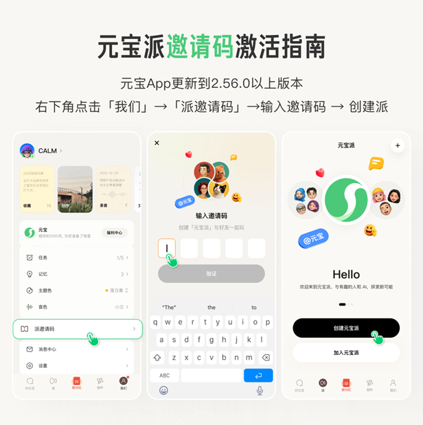 新快报讯 2月1日,腾讯旗下AI助手元宝,正式宣布“元宝派”公测上线,用户可通过元宝APP创建或加入一个“派”。在元宝派里,元宝AI作为派友,能够与用户聊天互动、协作与娱乐。除了内测已有的@元宝AI对话、P图二创和共享屏幕等能力。公测版本还打通了腾讯视频、QQ音乐内容生态,用户可以与派友一起听音乐、一起看电影。公测期间,将元宝APP更新到2.56.0以上版本,通过元宝APP的「我们」入口,在「派邀请码」里输入邀请码,即可获得创建派的能力。没有获得邀请码的用户,也可以通过朋友分享的派链接和派号加入派。