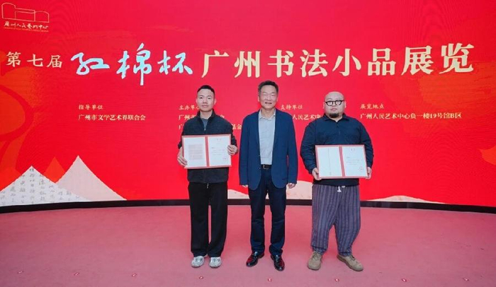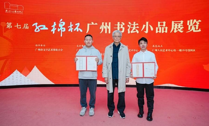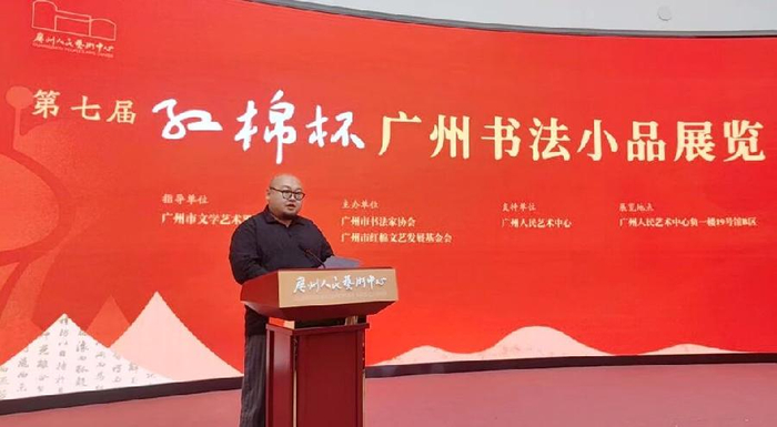 优秀获奖作者代表许嘉亮在热烈的掌声中,优秀获奖作者代表许嘉亮发表了真挚的获奖感言。他分享了自身对于小品书法“精微处见广大”的创作体会,表达了对“红棉杯”这一平台给予创作者展示机会的感激之情,并表示将继续沉潜传统、观照时代,努力创作出更多贴近生活、传递美好的书法作品,为繁荣书法艺术贡献力量。