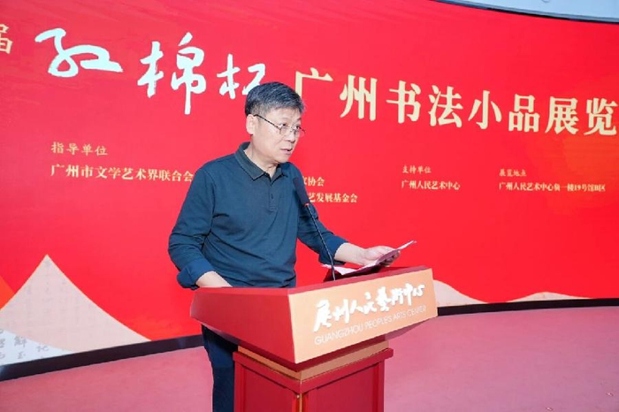 广州市书法家协会主席梁晓庄广州市书法家协会主席梁晓庄先生致辞表示,去岁“红棉杯”长卷展气韵恢宏,今朝小品展踏春而来,构成了广州书法艺术多元并存的生动图景。“红棉”不仅是一个艺术品牌,更是广州城市精神——开放包容、坚韧奋进的象征。他强调,小品书法重在“守正创新”,于有限空间内坚守笔墨正道、深耕传统经典,同时构思精巧、探索当代表达。本届参展作品整体水平精湛,展现了书家们深厚的传统功底与活跃的创新意识,反映了当前书法创作扎根传统、面向时代的蓬勃面貌。他进一步表示,“红棉杯”始终坚持以人民为中心的创作导向,致力于推动书法艺术从书斋走向公共空间,搭建艺术与大众、传统与现代沟通的桥梁,这是对中华优秀传统文化进行创造性转化、创新性发展的生动实践。