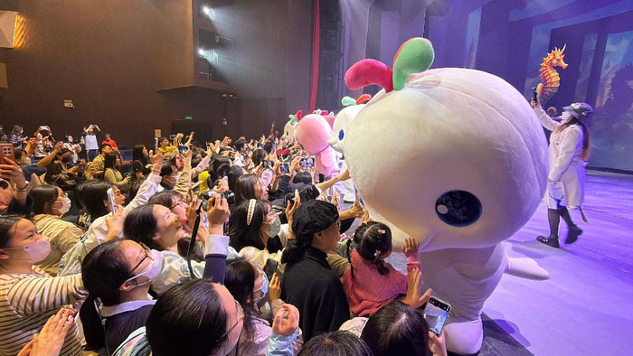 演出结束后,观众到台前与“大湾鸡”互动梦幻的舞台、活力四射的杂技表演、萌趣十足的“大湾鸡”形象,搭配治愈温暖的演绎风格,全程收获观众不间断的掌声与欢笑声。试演期间惊喜不断:“大湾鸡”集体走下台,围绕在观众身边连跳十分钟热歌,互动场面热烈又暖心;迷你“大湾鸡”彩蛋的出现,更让现场氛围瞬间拉满。演出结束后,观众们围满台下向“大湾鸡”挥手致意,直呼“太幸福了!”还有观众表示,自己已锁定未来每一场试演和正式演出的第一排,“剧场表演的魅力,就在于每一次呈现都有不一样的惊喜”。