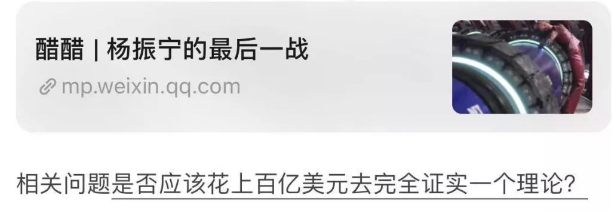 反对杨振宁观点的理由也很直接,不造出来怎么知道没用呢?研究什么项目不用花钱?