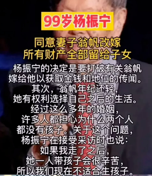 至少杨振宁是不愿意让翁帆承受嫁给他是图名图钱这个恶名。
