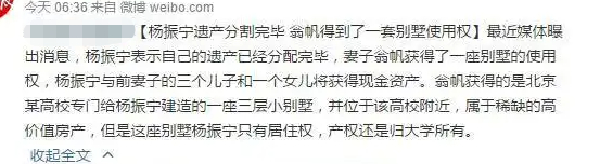 他将现金资产全部留给与前妻生的三个儿子和一个女儿,翁帆只获得一座别墅的使用权,且别墅的产权归某大学所有。