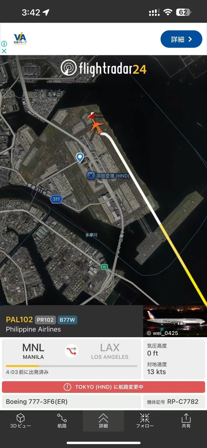 据菲律宾交通部证实,从马尼拉起飞的菲律宾航空公司PR102班机在飞行途中发生舱内冒烟事件,被迫于4月10日清晨紧急降落在东京羽田机场。