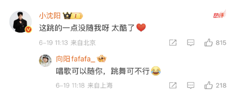父亲小沈阳在评论区互动打Call:“这跳的一点没随我呀 太酷了”