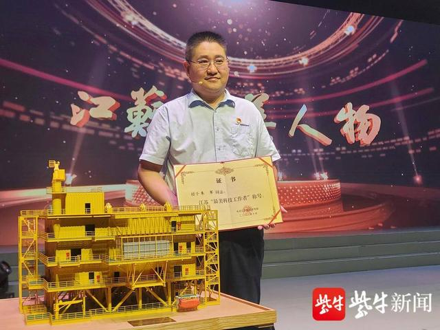 金秋时节,黄海之滨海风劲吹,一座“大国重器”正将风能储存为电能,源源不断传向陆地,输送到千家万户。作为海上风电项目的“心脏”,这座亚洲最大容量的海上升压站每年可提供清洁电能10亿千瓦时,节煤12.29万吨,减碳78.5万吨。日前,它的主要研发设计者,南通泰胜蓝岛海洋工程有限公司研发中心主任朱军,获评江苏“最美科技工作者”荣誉称号。二十年来,朱军完成了从“门外汉”到行业领军人物的蜕变,突破众多技术瓶颈,成为海工装备研发设计的行家里手。
