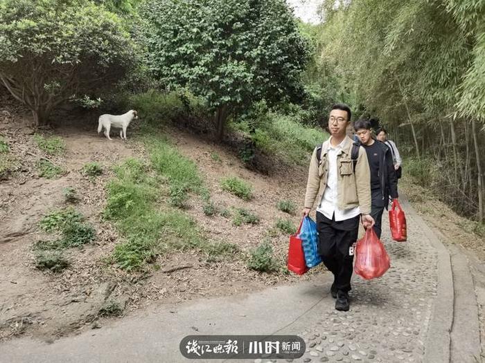 叶超群手里提着4个食品袋,艰难地拾阶而上。叶超群将肉和蔬菜都塞进驻岛人员食堂的冰箱,剩下一些零食带进了自己的宿舍。