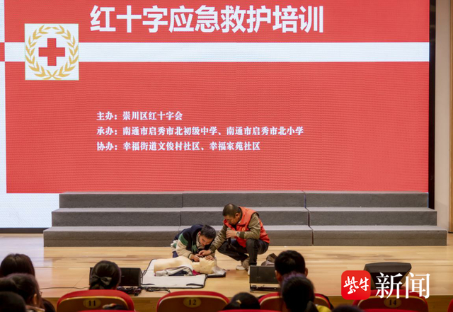 春季气候变化无常,各类火灾事故频发。为筑牢校园“防火墙”,增强青少年安全意识,活动邀请唐闸消防大队进校园,为学生们讲解消防15分钟演示系统、未成年人火情应对处理及常见灭火器材使用方法等知识,并鼓励他们做好“防火宣传员”和“安全小卫士”。“体外按压深度要到位”“人工呼吸要5步走,切、撑、抬、捏、吹……”在区红十字会俞飞老师现场讲解、示范后,现场的青少年们在文俊村社区党员志愿者们帮助进行了基础心肺复苏术和创伤救护的尝试。关爱生命,“救”在身边。一场别开生面的现场培训会,让大家预“燃”于心。经过培训,青少年们纷纷表示,会救敢救“我能行”,这样的培训很有意义。