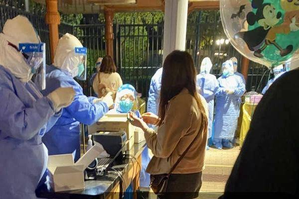 2021年10月31日,迪士尼紧急关闭,游客进行核酸检测