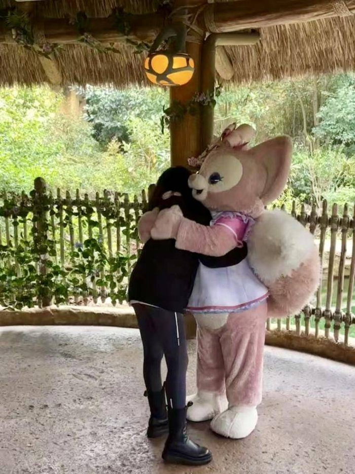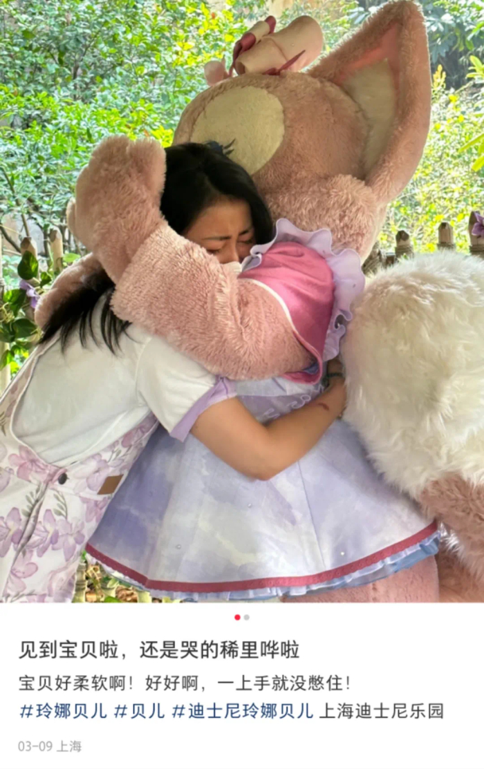 社交平台上,网友晒出自己与玲娜贝儿拥抱时忍不住痛哭