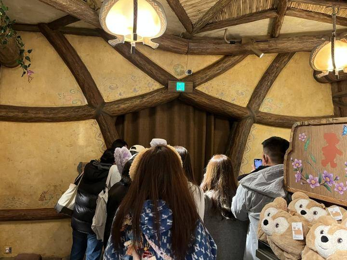 粉丝们在部落丰盛堂商店里等待玲娜贝儿休息结束。