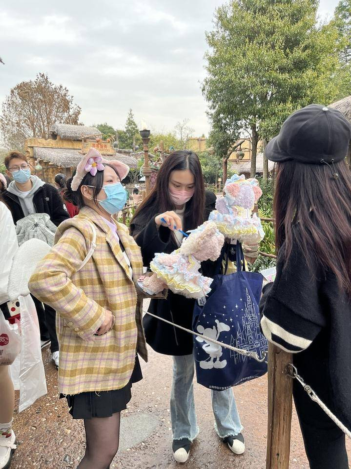 宋思敏是迪士尼的忠实粉丝,玲娜贝儿是她最喜欢的角色。在宋思敏眼中,它不像希望成为芭蕾舞演员的星黛露,优雅而温柔;也不像稳重大方的女企业家饼饼(可琦安)。“它的性格是很多样的,很活泼,很善良,也很可爱,和别的宝贝不一样的地方是,它率真而且直接,无论是花车巡游还是和别人互动都特别虎,它很真实。”一旁的朋友笑着打趣:“因为她有钱,而且也不怕老板(米奇),也敢一个人出去探险。”