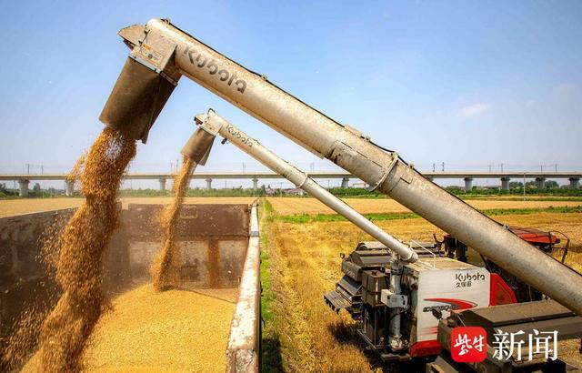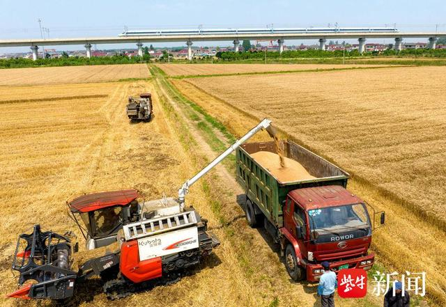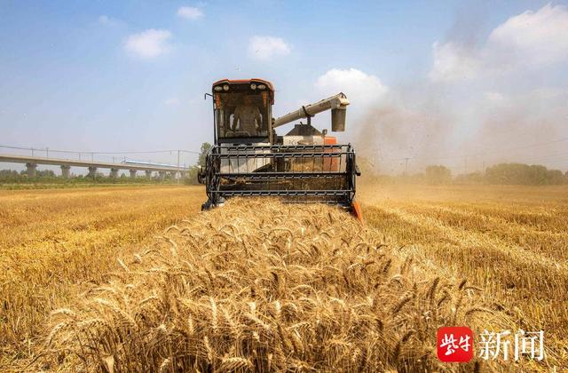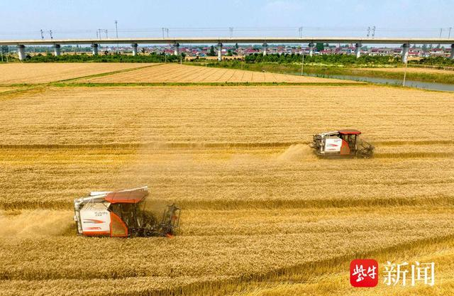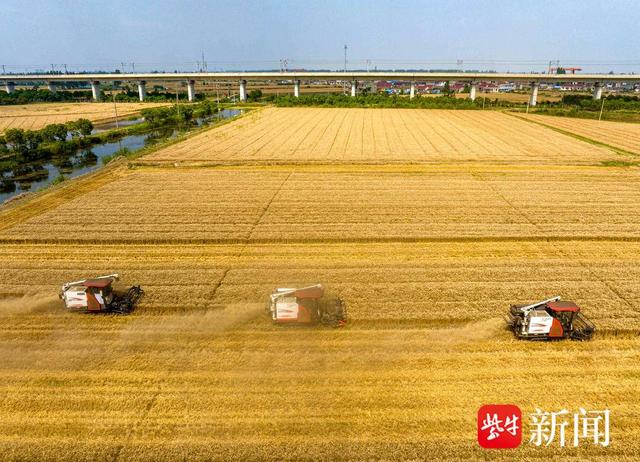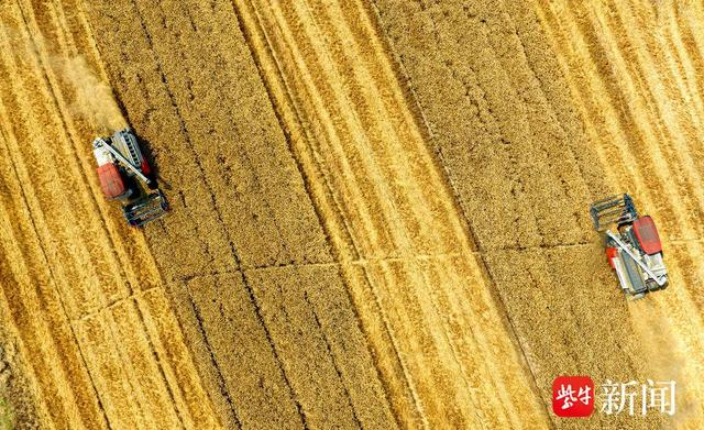 近期,扬州市江都区67万亩小麦陆续进入收割期,当地农民抢抓晴好天气,及时组织收割。田间作业的农业机械与成片的金黄色的小麦构成了一幅美丽的丰收画卷。