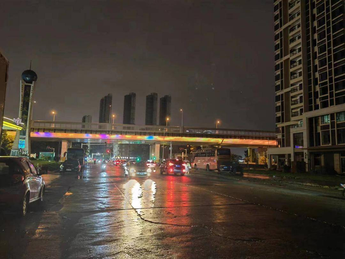 7月27日晚上的舟桥路段。澎湃新闻记者 谭君 图