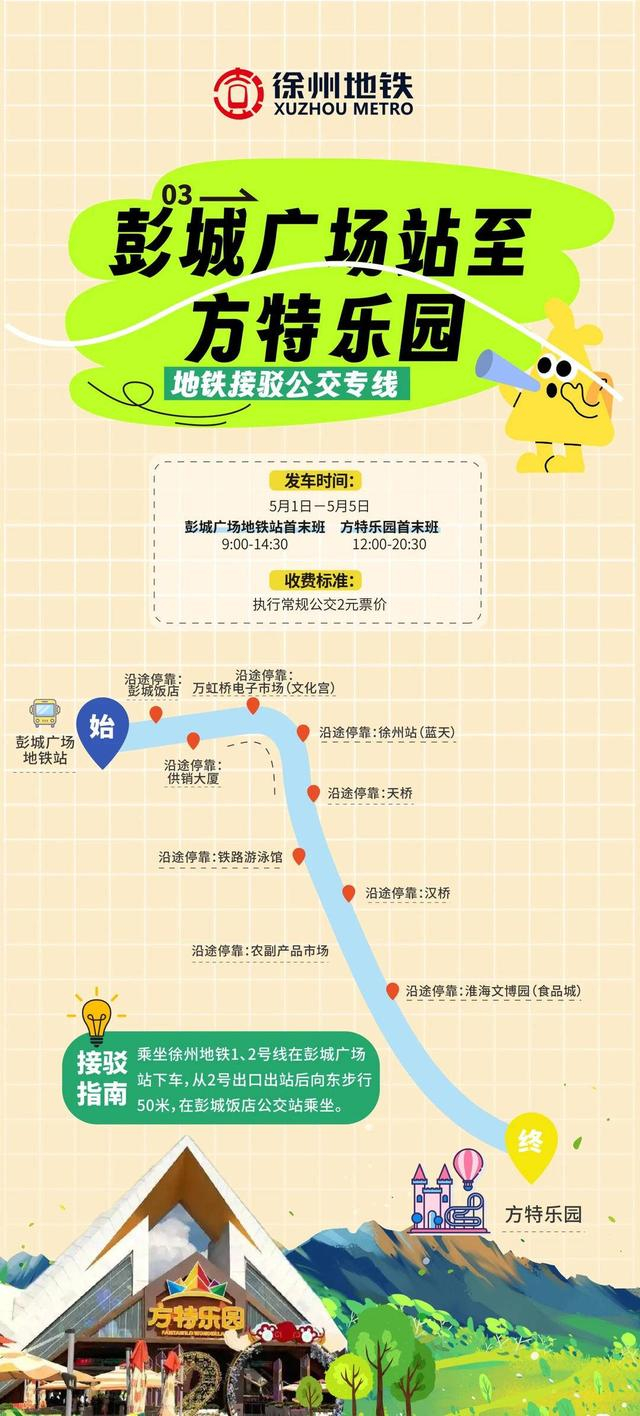 线路3: 彭城广场站至方特乐园地铁接驳公交专线