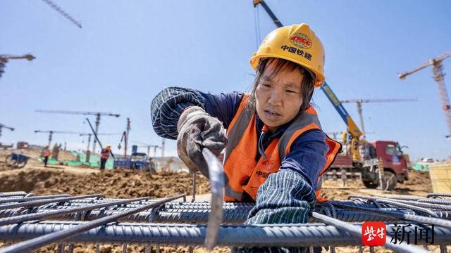 在施工现场,上百台吊机、挖机、罐车、土方车协同运转。运输车辆穿梭不息,工人们在钢筋绑扎、混凝土浇筑、钢柱吊装等岗位上争分夺秒。中铁建设集团南京北站项目工程部长吴蒙介绍:“五一期间我们日均投入工人1500人、机械500台,完成混凝土浇筑7千立方米,主体施工再提速。”