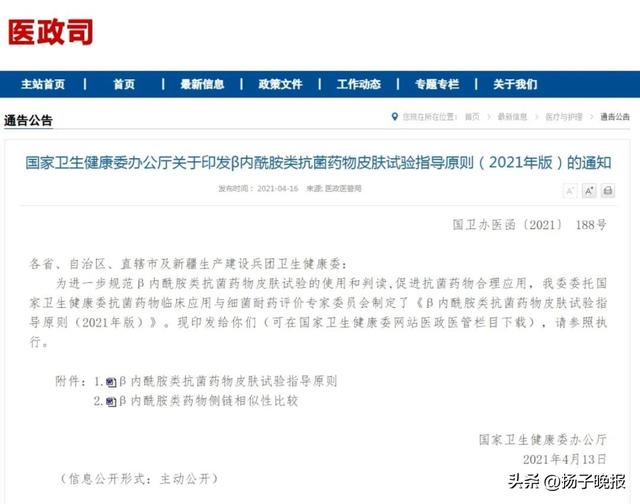 记者注意到,《中国药典》和《抗菌药物临床应用指导原则》均没有头孢菌素类药物进行皮试的规定。2021年国家卫生健康委发布《国家卫生健康委办公厅关于印发β内酰胺类抗菌药物皮肤试验指导原则(2021年版)的通知》(下称指导原则),明确说明不推荐头孢菌素类药物常规皮试(除既往有明确的青霉素或头孢菌素速发型过敏史患者、药品说明书中规定需进行皮试的),并提供了相关循证证据。