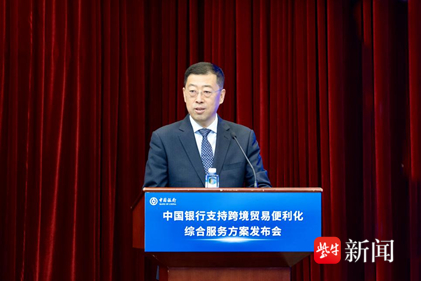 5月6日,中国银行在江苏南京举办支持跨境贸易便利化企业座谈会,并发布《中国银行金融支持跨境贸易便利化综合服务方案》。中国银行董事长葛海蛟、副行长张小东,江苏省副省长方伟出席。商务部驻南京特派办、江苏省相关部门,以及荣盛集团、苏豪集团、徐工集团、奇瑞集团、中基集团、东浩兰生集团、乒乓智能、科沃斯和红宝丽集团代表参加。