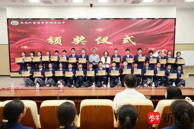在现场热烈的掌声中,南京外国语学校党委书记刘前树与秦淮区教育局局长、区委教育工委书记庄芸共同为“明远少年”优秀学生代表赠送纪念品。这一份份承载着期许与祝福的礼物,既是他们成长路上的温暖见证,更寄托着教育者对同学们厚植沃土、静待花开的深切期盼。