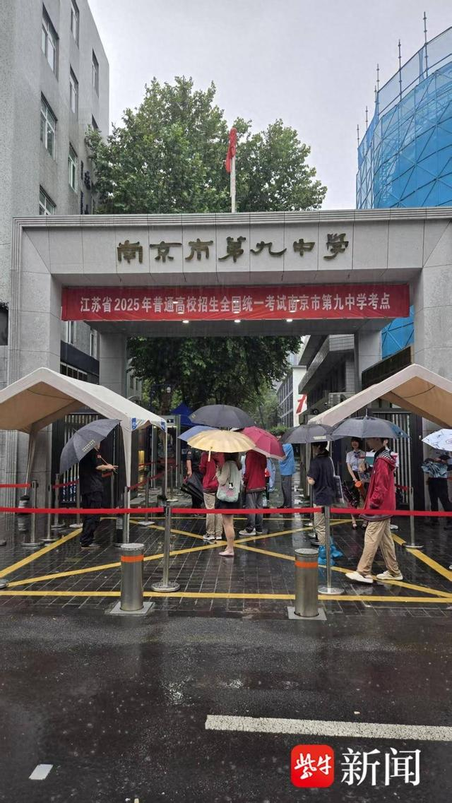 记者了解到,南京市第九中学考点设有34个标准化考场(含2个备用考场),服务894名考生。为助力考生安心应考,学校采取了多种措施护航高考,并放体育馆、礼堂等室内场所供全体考生休息,在校门口到体育馆及考场间安放多个避雨帐篷,组织志愿者撑起一条爱心助考伞道,让考生可以更加从容地走进考场。
