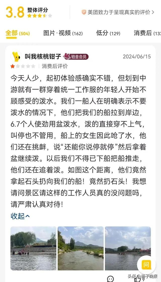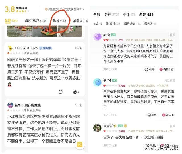 紫牛新闻记者在美团的齐鲁嵩山峡谷漂流看到,目前该景区有504条评论,其中低分评论达129条,占比25.6%。