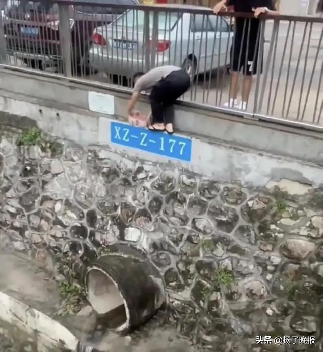 视频显示,一座桥下的河水里散落着十多沓钞票,一男子拿着一个塑料袋正在捡。男子捡完后爬上河边护栏,将钞票放入一辆小车,有许多人在围观。