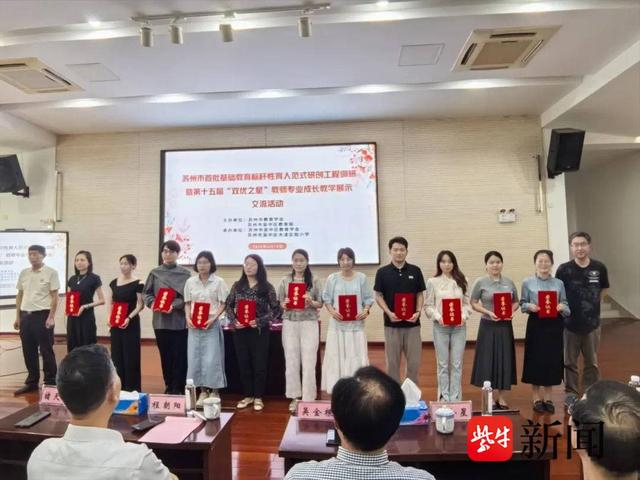 在苏州市教育学会第十五届“双优之星”颁奖盛典上,获奖教师们依次接受荣誉并合影。这不仅是对“双优之星”教师教学成果的认可,更是对他们未来发展的鼓励与期许。