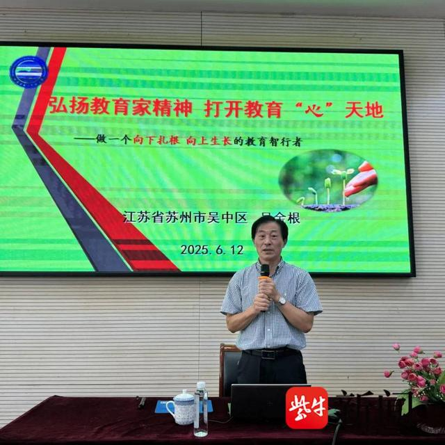 吴金根会长作《弘扬教育家精神 打开教育“心”天地》专题报告。他强调,优师必须读懂教育,寻找教育本真,智慧教育策略,创优教育未来。提出弘扬教育家精神需以“心有大我”的家国情怀厚植教育理想,以“行强师我”的专业追求锤炼育人本领,以“教有小我”的务实态度深耕课堂实践。报告高屋建瓴,为教师的专业发展提供了有效指引,提振了在场教师深耕教育事业的信心与动力。
