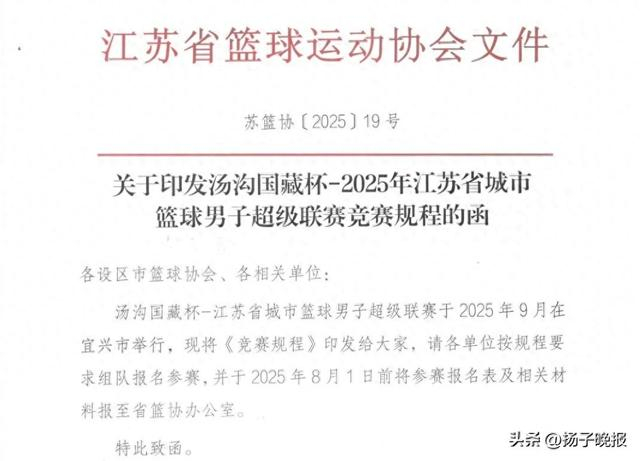近日,江苏省篮球运动协会正式发布《2025年江苏省城市篮球男子超级联赛竞赛规程》,宣告江苏篮球的盛宴将于2025年9月擂响战鼓,组队报名工作现在开始!