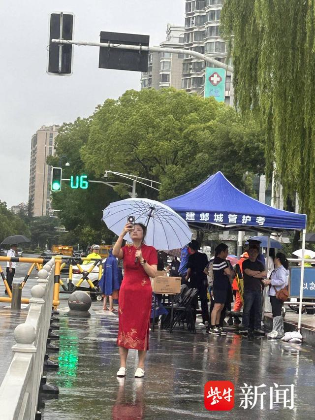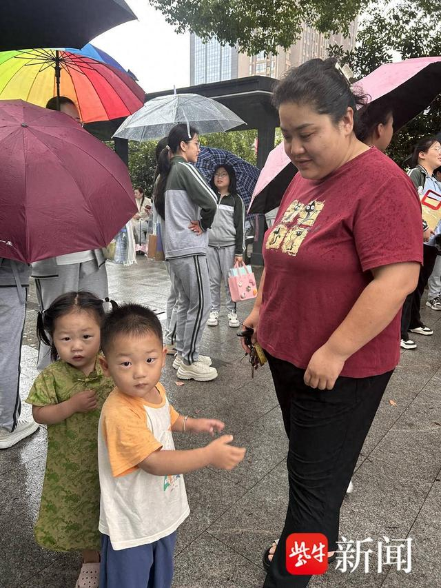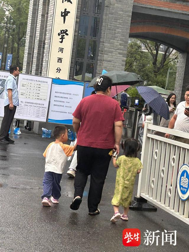 6月21日,南京中考开考。早上7点,金陵中学河西分校考点,在淅淅沥沥的小雨中,考生陆续到场。一位妈妈牵着两个小朋友走在人群中格外耀眼。记者了解到,这是一对双胞胎,今年才3岁,今天起了大早给姐姐送考,妹妹还穿了一件旗袍。“祝姐姐旗开得胜!”妹妹细声细语地说。