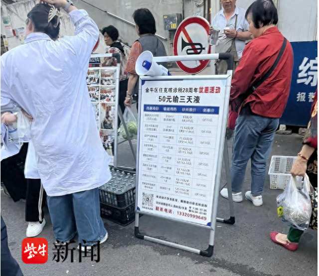 扬子晚报网6月21日讯(记者 郭一鹏) 近日,有网友在社交媒体发帖称,位于四川成都市金牛区抚琴中街的一家诊所推出“50元输三天液”的促销活动。