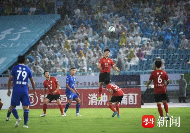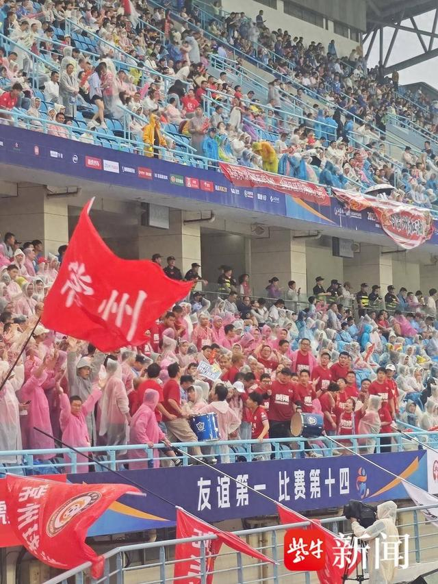 傍晚时分,雨水便已笼罩奥体中心。开赛哨声在19:00准时鸣响,雨水打湿了球员的衣衫,模糊了奔跑的视线,却丝毫未能冷却看台上那一片跃动的赤红。球迷们裹紧透明的雨衣,雨水顺着帽檐滴落,却无人退场,呐喊声反而在雨幕中愈发响亮、齐整。“常州队!加油!风雨无阻!”的呼喊,如利剑劈开雨帘,成为场上将士寸土必争的精神后盾。