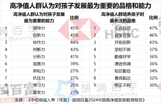 胡润百学董事长兼首席调研官胡润表示:“在孩子品格塑造方面,高净值人群最为关注子女所展现出的乐观自信、诚实守信以及开拓创新的品质。高净值人群选择送子女去海外留学的主要动因依次为:丰富子女的人生阅历(占比76%)、提升子女的学历背景(占比66%)以及增强子女的就业竞争力(占比53%)。”