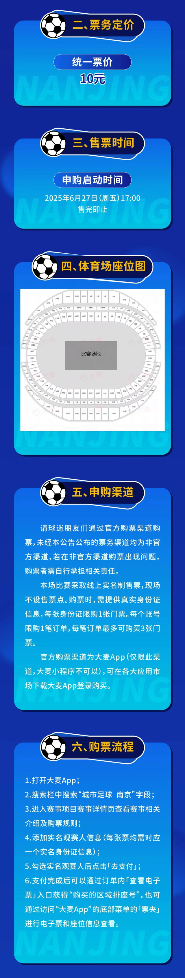 扬子晚报网6月26日讯(记者 张昊 王夕悦)6月26日下午,记者从南京体育产业集团公告了解到:2025江苏省城市足球联赛第6轮,南京队将在南京奥体中心体育场主场对阵苏州队,本场比赛相关票务开票事宜已公告。