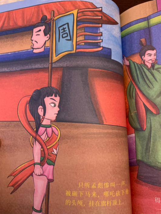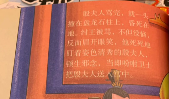 根据购书网友分享的内容,该绘本内容颇为混乱,光着屁股跪拜太乙真人的哪吒如果说看着只是有点“辣眼睛”的话,还有些内容就令人不适了,比如书中有角色头被砍下,一颗头直接挂在旗杆上,文案里还出现了“纣王死死盯着姿色清秀的殷夫人,顿生邪念,当即吩咐卫士把殷夫人送入宫中”这样的内容,在神话传说设定中,殷夫人是纣王的妹妹,出身殷商王室,如此文案实在是过于炸裂了。