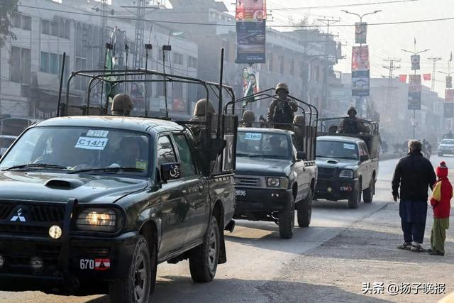 巴基斯坦白沙瓦,巴基斯坦军队车队在一条公路上巡逻。(视觉中国)