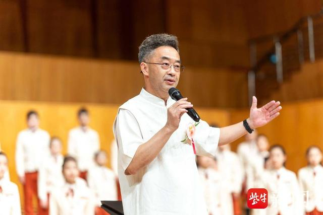 合唱团的“老朋友”、江苏省作家协会副主席祁智又一次来到现场,为孩子们“打Call”。“没有歌声的童年并非健全的童年”,祁智说:“这么多年,我一直与天正合唱团在一起,看到了一批又一批的才子从这里走向了更加广阔的天地。当年答应的为孩子们编写一部长篇小说《天籁正音》,已经写了2万多字,我想明年音乐节再举办时,大家就能看到这本书。”祁智带来的“彩蛋”瞬间点燃全场,观众们用掌声和欢呼声表达了自己的期待。