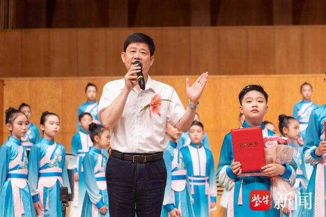 南京市教育局一级调研员卢普新、南京市鼓楼区教育局副局长盛蕾以及南京市教育局体卫艺处副处长姚敏,为15位毕业班团员颁发荣誉证书。卢普新点赞了合唱团的展演,强调了音乐教育对孩子全面发展的重要性,并对天正童声合唱团的未来发展提出了新的期望。