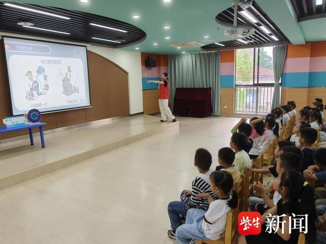 蝉鸣阵阵,暑假将至。为提高儿童安全防范意识,筑牢暑期安全防线,6月24日,崇川经济开发区新时代文明实践所、国胜社区新时代文明实践站联合一二一心翼护航亲子服务社,前往同和幼儿园开展“平安一‘夏’ 安全‘童’行”趣味安全科普活动,为孩子们的平安假期注入满满“安全感”。