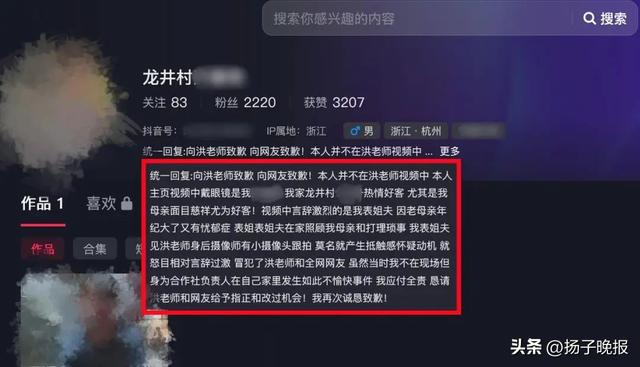 30日下午,茶叶店老板万先生告诉记者,此事发生于一个月前,视频中的男子是他表姐夫。万先生称,他平时不在店内,不清楚此事详情。万先生的社交账号主页致歉称,他表姐夫看到洪剑涛身后摄像师有小摄像头跟拍,产生抵触感并怀疑动机,因此怒目相对,言辞过激,冒犯了洪剑涛。他对此事诚恳致歉。